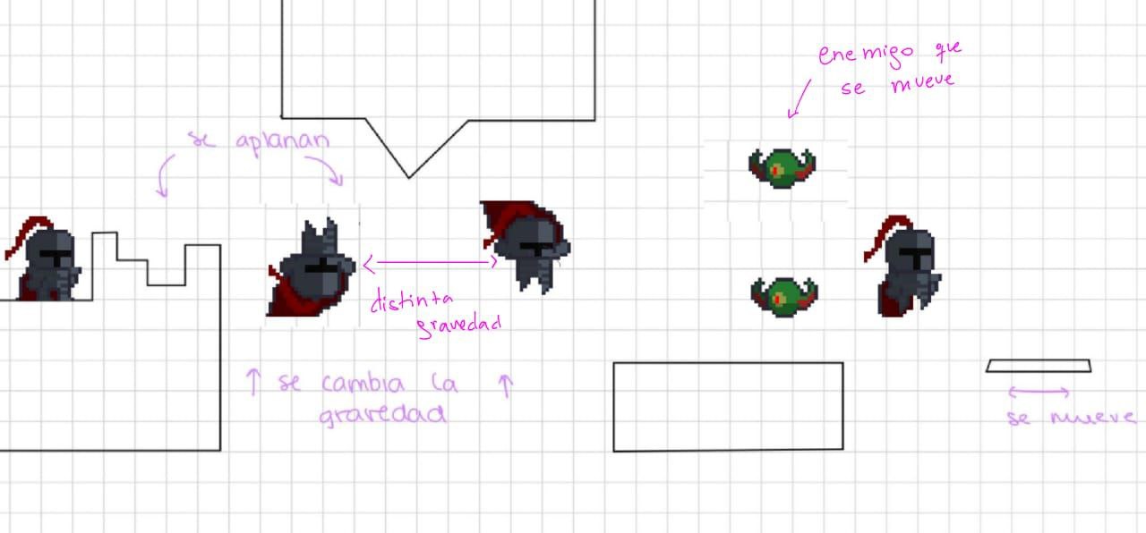 - Invertir la gravedad para que el personaje pueda avanzar por suelo o techo.
